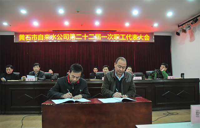 與會(huì)代表認(rèn)真聽(tīng)取并審議通過(guò)了《公司工作報(bào)告》、《黃石市自來(lái)水公司“十三五”供水發(fā)展規(guī)劃要點(diǎn)(草案)》、《關(guān)于公司加入武漢城市圈職工重大疾病醫(yī)療互助的議案》、《關(guān)于實(shí)行公司制改造的議案》,并對(duì)公司領(lǐng)導(dǎo)班子及班子成員進(jìn)行了民主評(píng)議。公司總經(jīng)理劉子俊對(duì)職工代表提出的生產(chǎn)經(jīng)營(yíng)、職工培訓(xùn)、智能信息運(yùn)用、職工福利等方面的意見(jiàn)和建議一一進(jìn)行了解答。他代表公司與各基層單位簽定了《2016年度量質(zhì)化考核責(zé)任書(shū)》、《2016年度績(jī)效考核責(zé)任書(shū)》。
