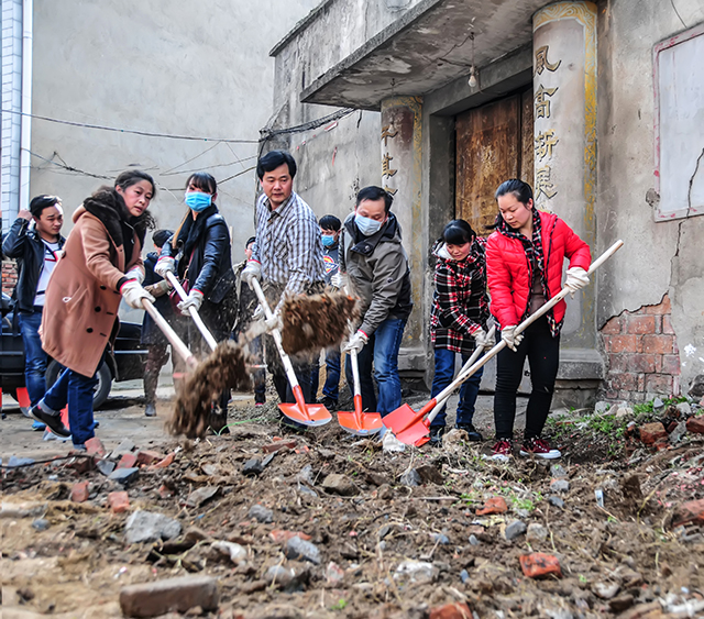 黨員干部參加新閘社區(qū)衛(wèi)生整治活動。紀(jì)云霞攝