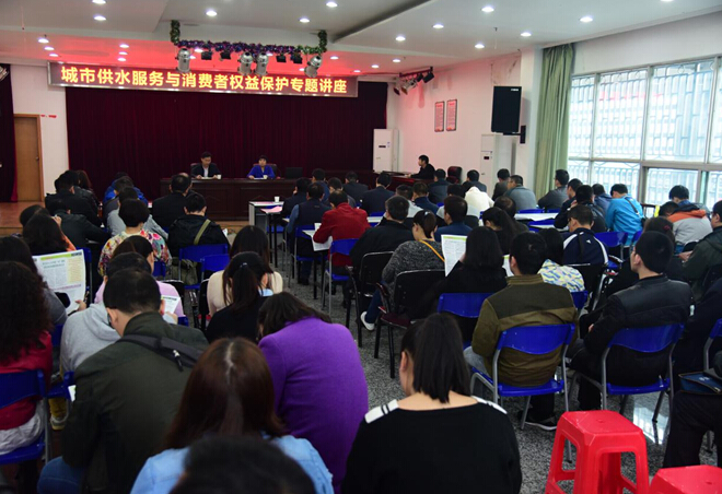 為進一步提高“兩學一做”學習教育實效性和針對性,10月27日下午,公司在二樓會議室舉辦“城市供水服務與消費者權(quán)益保護”專題講座,邀請市消費者委員會柯佳玲秘書長作專題宣講。公司黨委書記余曦同志主持講座,公司客服中心、經(jīng)營銷售公司、管網(wǎng)維護公司、市場開發(fā)辦、改水辦等窗口服務單位、部門的干部職工共80余人參加了此次講座。
