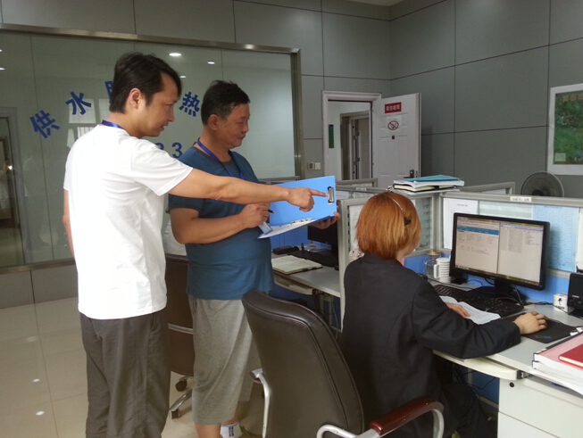 圖為:紀檢員在“供水服務(wù)熱線”對用戶來電故障報修、反映問題等落實情況進行檢查。