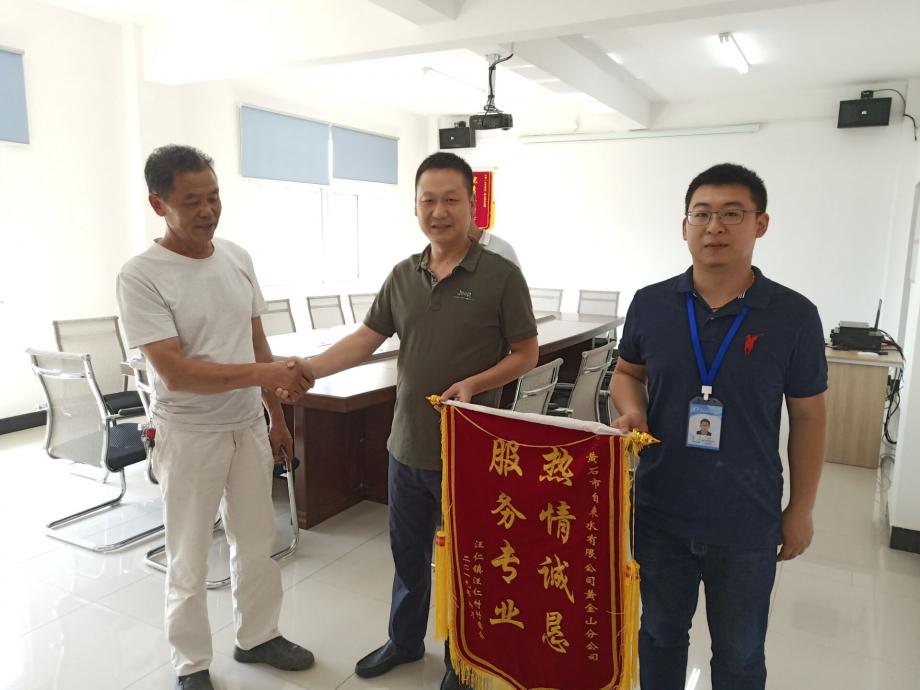 6月4日上午,汪仁鎮(zhèn)汪仁村相關(guān)負(fù)責(zé)人代表全村來(lái)到市自來(lái)水有限公司黃金山供水分公司,送來(lái)了一幅印有“服務(wù)專業(yè)  熱情誠(chéng)懇”的錦旗,對(duì)他們貼心為民服務(wù)、真誠(chéng)為民解憂的行為表示感謝。