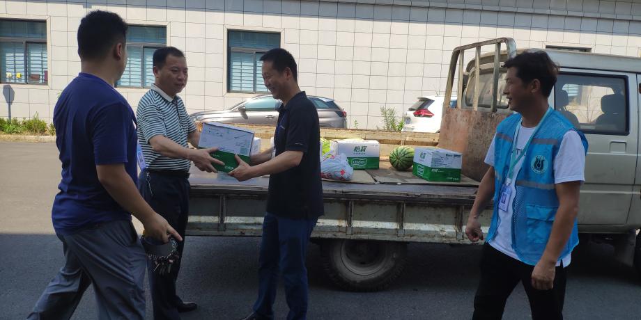 8月5日—6日,公司開展高溫慰問活動,公司領(lǐng)導(dǎo)余曦、張昌銳等分別赴14個基層單位及重點工程項目工地,為烈日酷暑下依舊奮戰(zhàn)在一線的廣大干部職工送去綠豆、礦泉、西瓜、飲料等夏季防暑降溫物資。