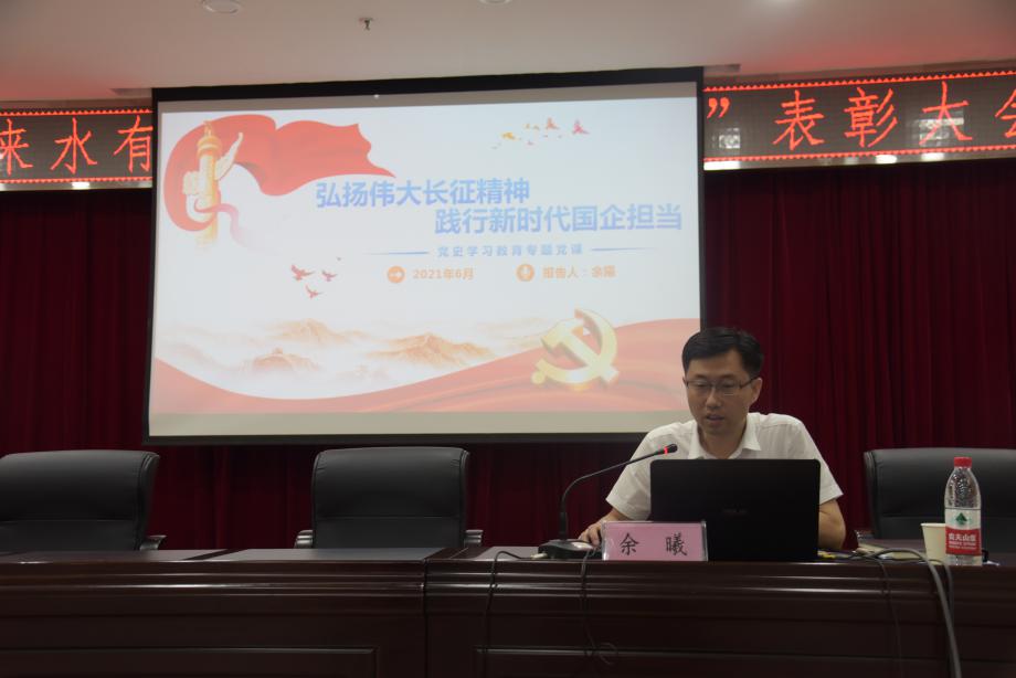 公司黨委書記、董事長余曦同志以《弘揚偉大長征精神 踐行新時代國企擔當》為題講授黨課,生動的回顧了長征的宏偉歷程,從實事求是、密切聯(lián)系群眾、艱苦奮斗、愛國愛人民等四個方面深刻剖析了長征精神內(nèi)涵,并結(jié)合公司工作實際,強調(diào):一是要堅定理想信念,踐行初心使命;二是堅持艱苦奮斗,全力保障民生;三是堅持實事求是,深化改革轉(zhuǎn)型;四是深化作風建設,永葆黨員本色。