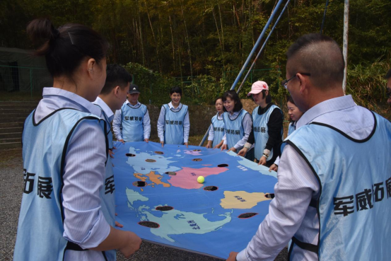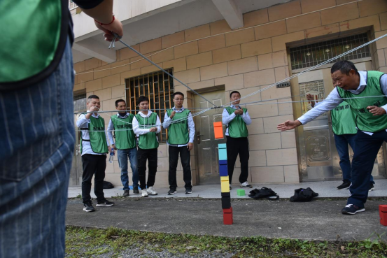 此次戶外拓展訓練項目以團隊協(xié)作為主要形式,集娛樂與競賽于一體。干部職工們首先被隨機分成六個組,隨后經(jīng)過小組集體討論,確定了各自的隊長、隊名、隊歌、口號、隊型,并進行了展示。