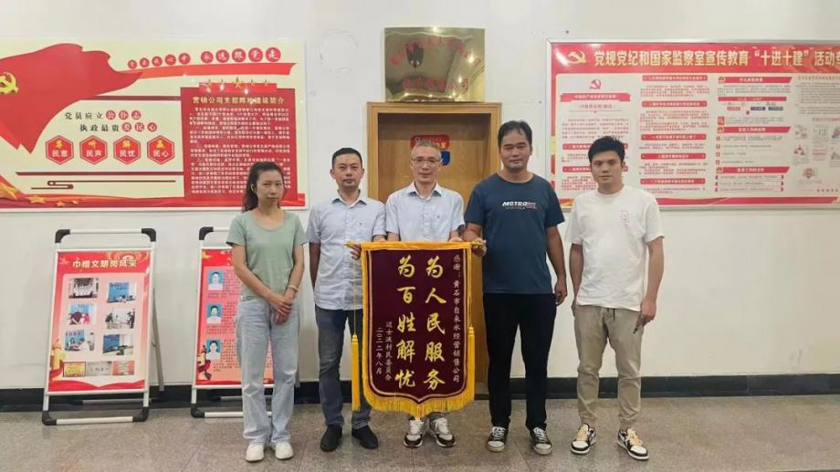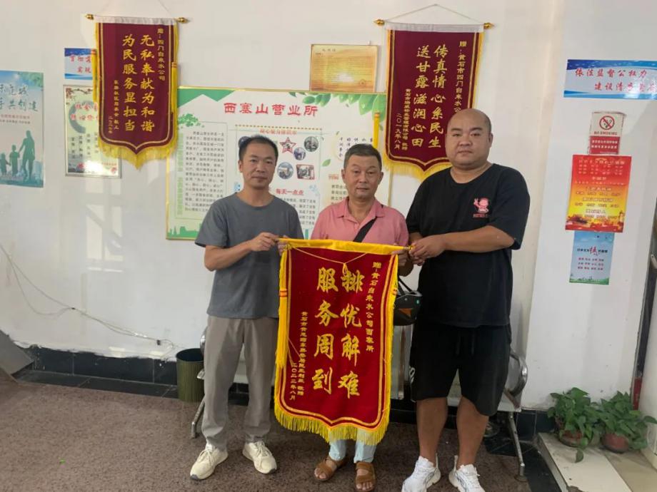 8月9日,陽光灼熱卻擋不住用戶感激之情,市民向市自來水有限公司送上“排憂解難 服務(wù)周到”錦旗,感謝公司及時發(fā)現(xiàn)市民戶內(nèi)管線漏水,免費(fèi)更換管線維修,保障市民家庭用水。