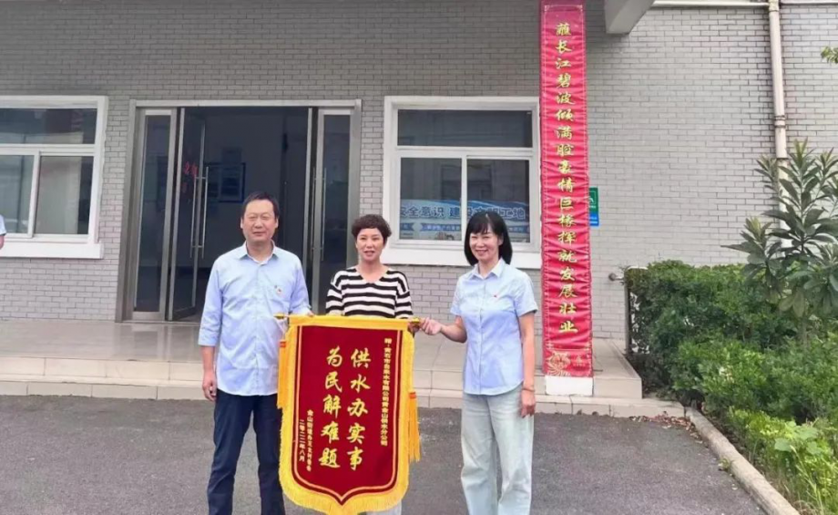 “謝謝,衷心感謝自來水公司幫我們解決用水難題,讓我們及時(shí)用上了干凈、放心的自來水。”8月31日下午,金山街道辦王太村委會(huì)劉女士為黃金山供水分公司送上錦旗,贊揚(yáng)和感謝分公司為民辦實(shí)事、高效快捷的優(yōu)質(zhì)服務(wù)。