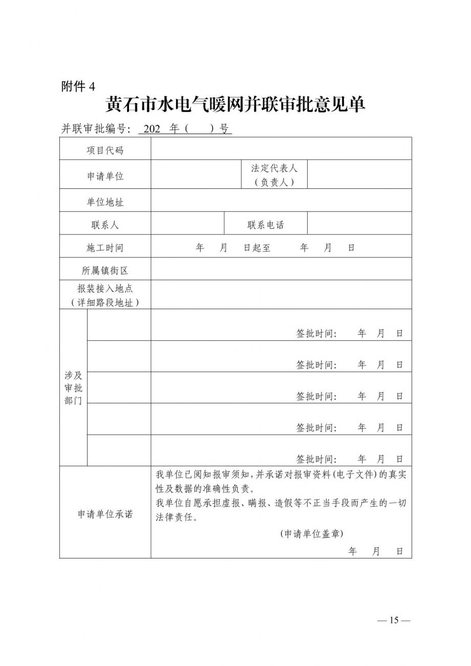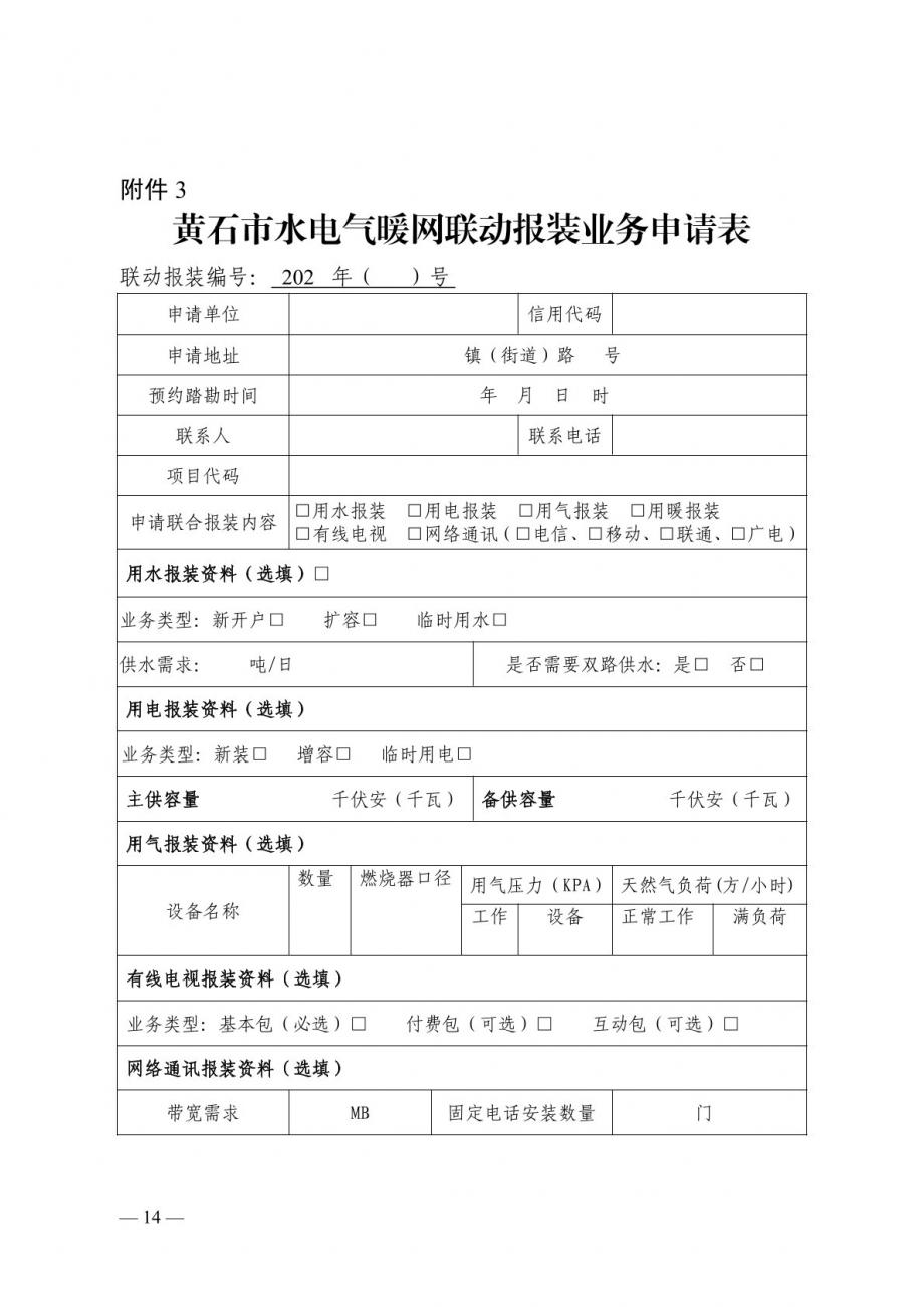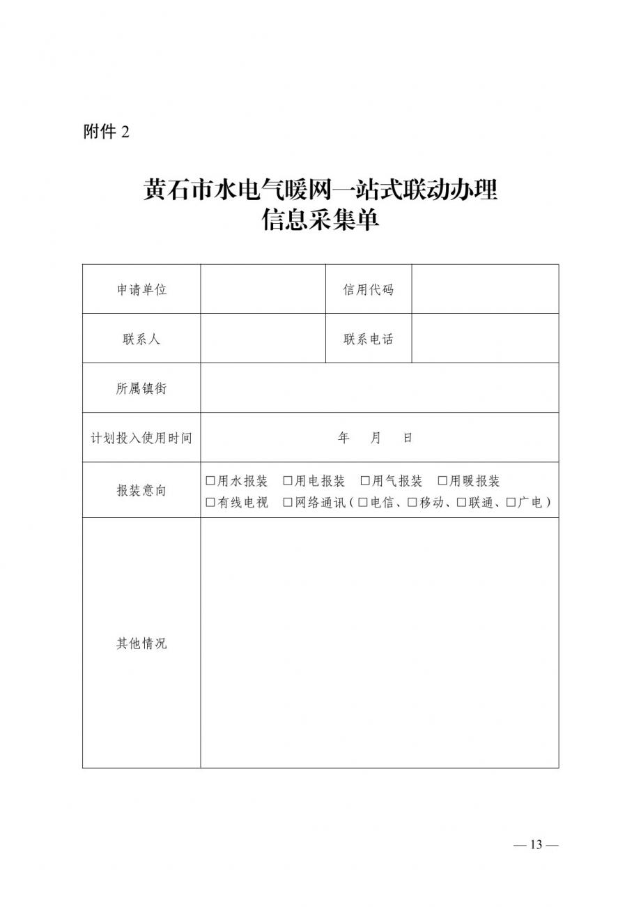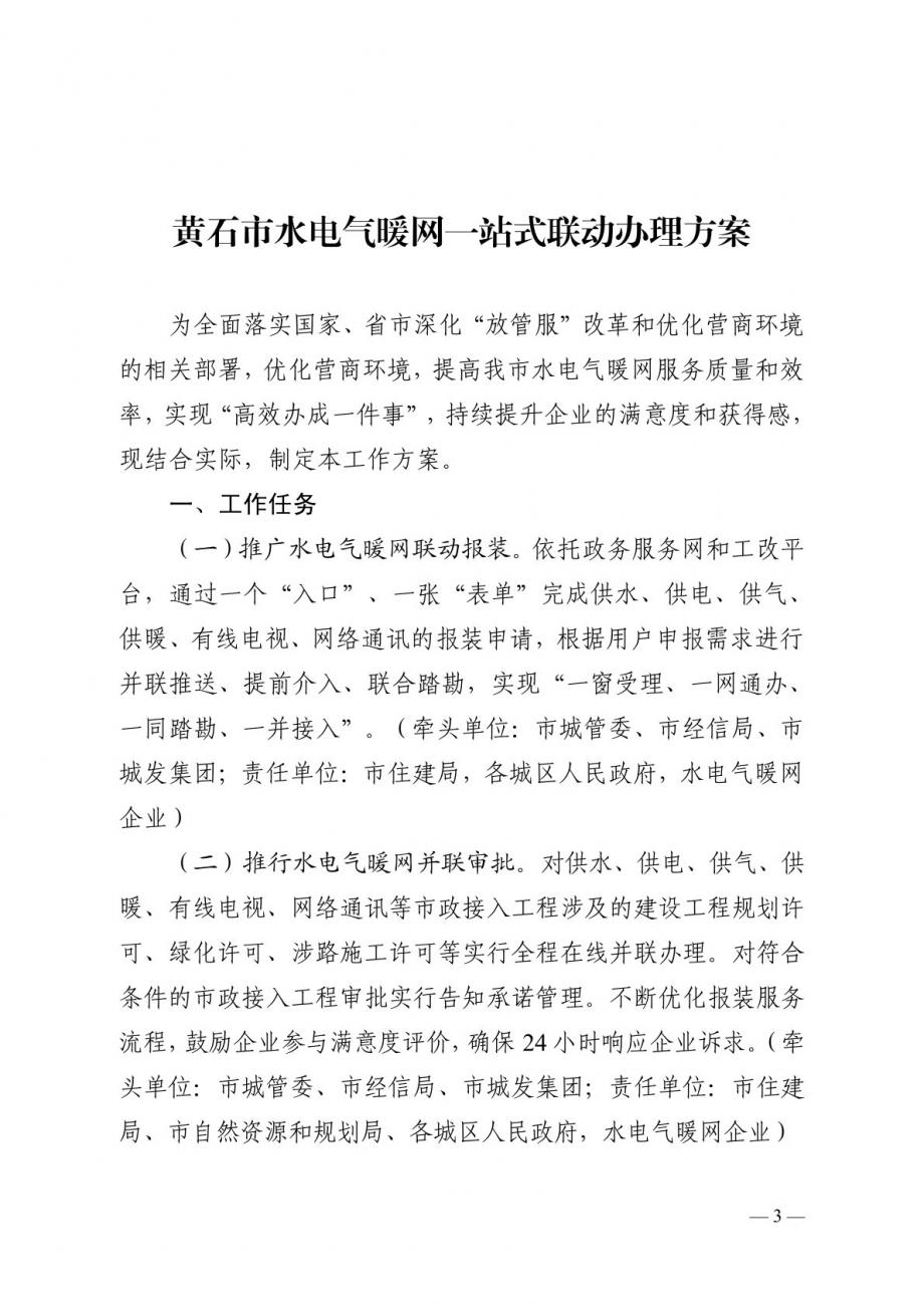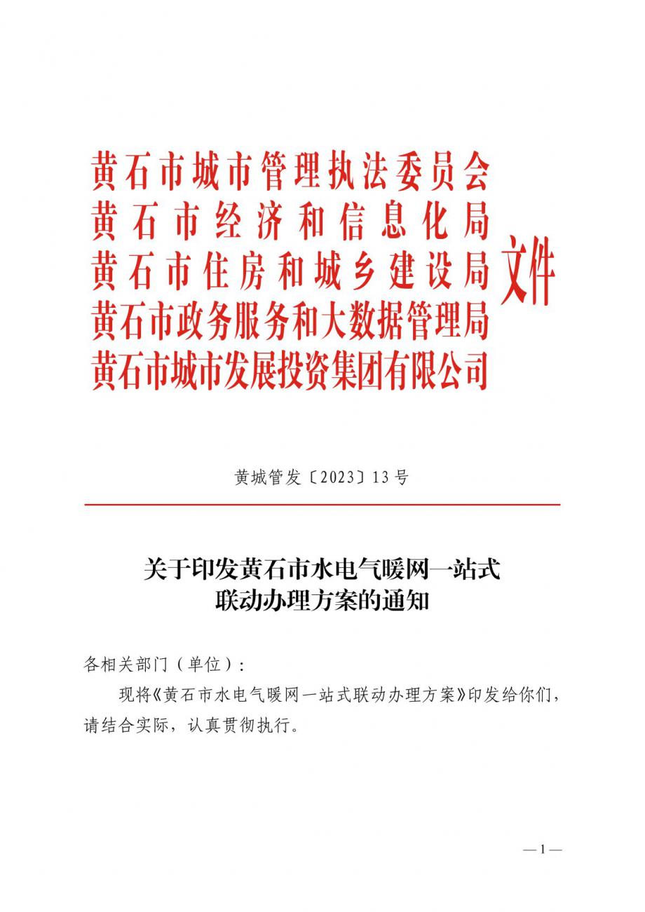 關于印發(fā)《黃石市水電氣暖網(wǎng)一站式聯(lián)動辦理方案》的通知