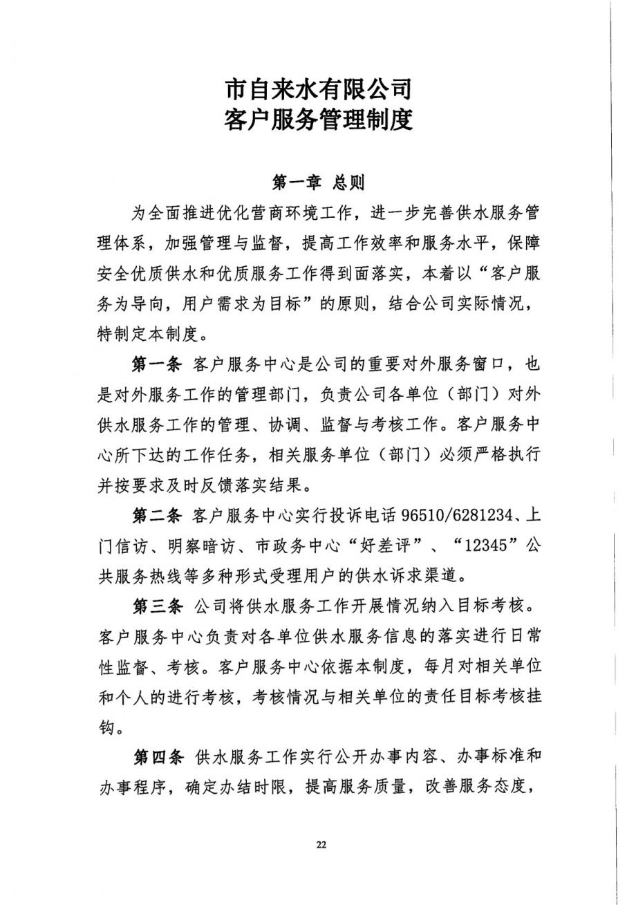 市自來水有限公司客戶服務(wù)管理制度