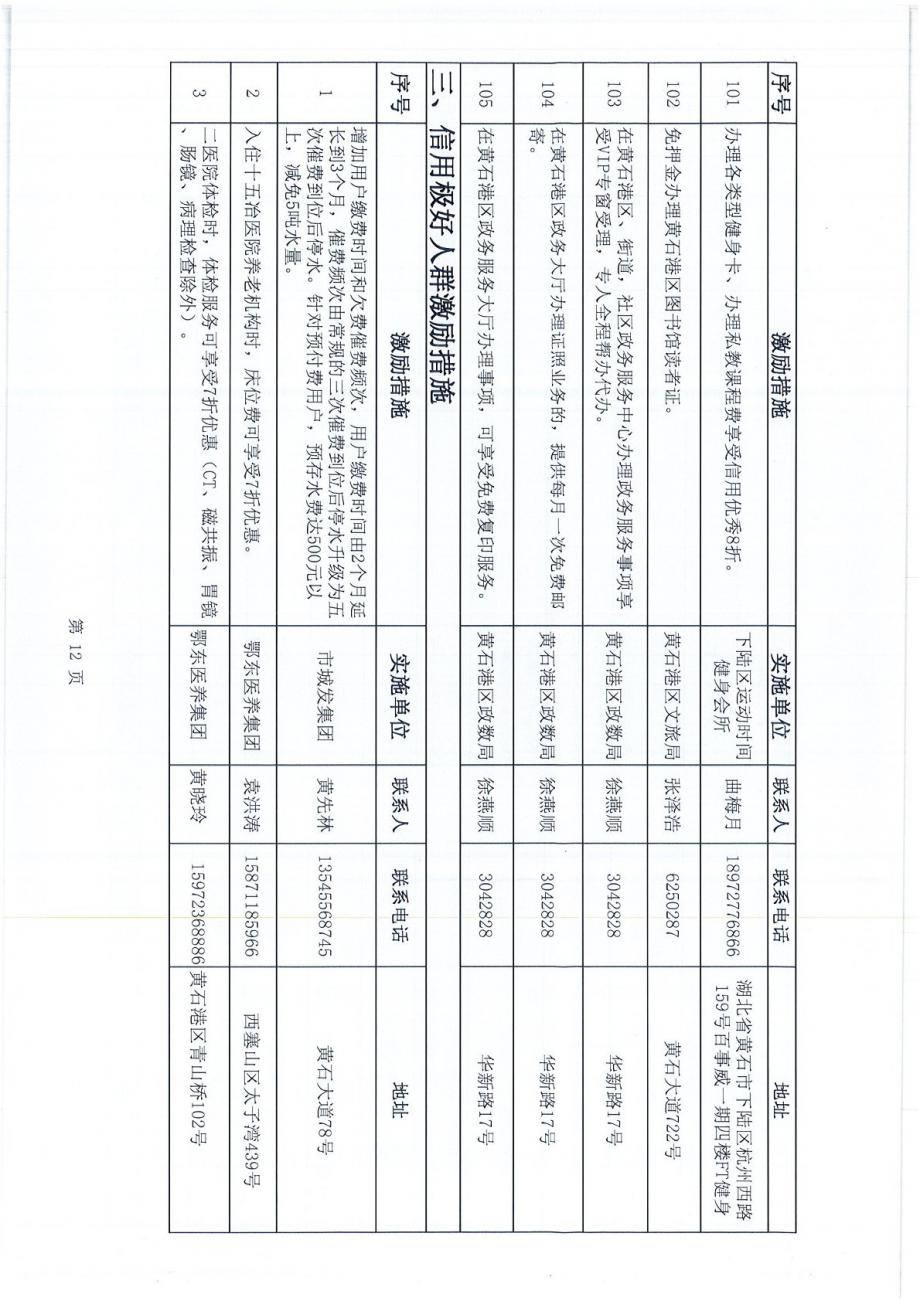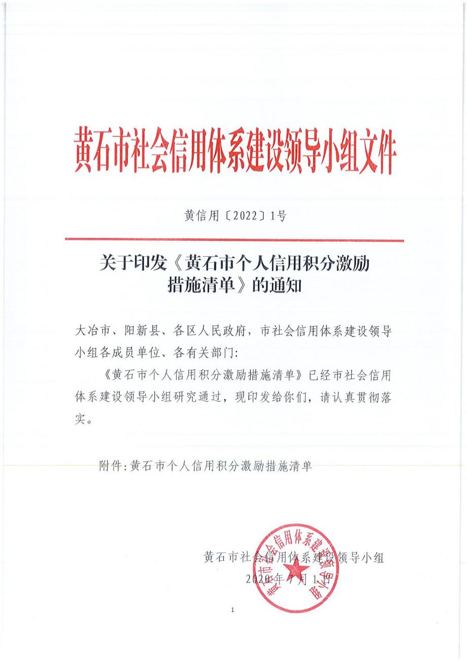 關(guān)于印發(fā)《黃石市個(gè)人信用積分激勵(lì)措施清單》的通知