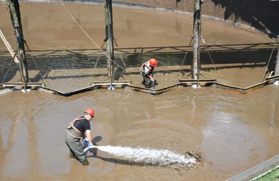 7 月下旬,青山湖污水廠拉響 “警報”。1 號二沉池刮泥機因連日高溫下長期高負荷運轉,刮泥板零部件扭曲變形、脫落。要知道,刮泥機一旦停擺,污水處理沉淀環(huán)節(jié)將陷入混亂,進而影響整個工藝流程的穩(wěn)定運行。為將對污水處理工藝的影響降到最低,市污水公司迅速行動,多次組織研討,精心優(yōu)化維修方案。在完成向上級報備,并采取降低進水量、排水放空等預處理措施后,維修中心與青山湖廠部緊密配合。維修人員身著厚重防護裝備,毅然踏入池底。高溫下,他們分工明確,沖洗、檢測、拆卸、安裝等工序有條不紊地進行著,專注修復更換刮泥機破損部位。經過不懈努力,7 月 30 日,1 號二沉池恢復正常運轉。