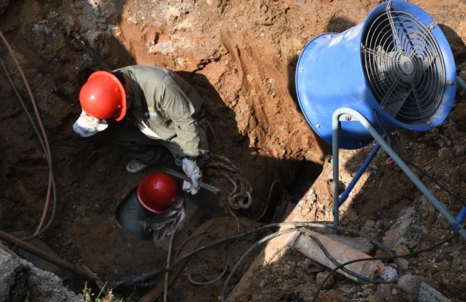 這邊青山湖污水廠的搶修剛剛告一段落,花湖污水廠又出現(xiàn)緊急狀況。7 月 29 日,值班人員發(fā)現(xiàn)曝氣池進水污水管地面滲水,初步判斷是管道老化破裂。若不及時修復,污水外溢將嚴重污染周邊環(huán)境。情況上報后,公司迅速響應,現(xiàn)場指揮調度有序開展。挖掘機持續(xù)近三小時作業(yè),終于找到破損點。工作人員嚴格按照專業(yè)流程進行安全作業(yè),在有限且悶熱的管道空間內,蜷縮著身體焊接,每半小時輪換一次。盡管汗水濕透衣衫,手臂被管道燙出紅痕,但他們沒有絲毫退縮,只為盡快排除隱患。