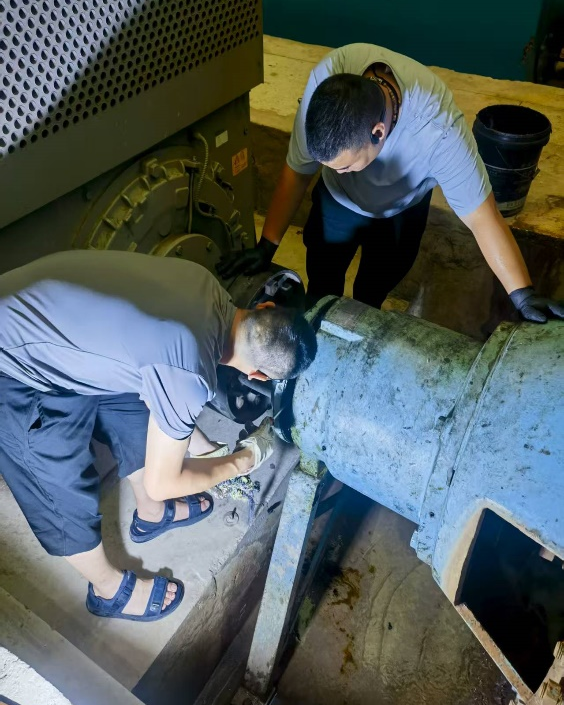 高溫下,露天設(shè)備表面溫度超 50℃,泵房內(nèi)悶熱難耐,駐派人員仍堅守“早發(fā)現(xiàn)、早處理”原則:觸摸電機測溫度、聆聽水泵辨異響、檢查管道看滲漏,將隱患消滅在萌芽狀態(tài),工裝常被汗水浸透。